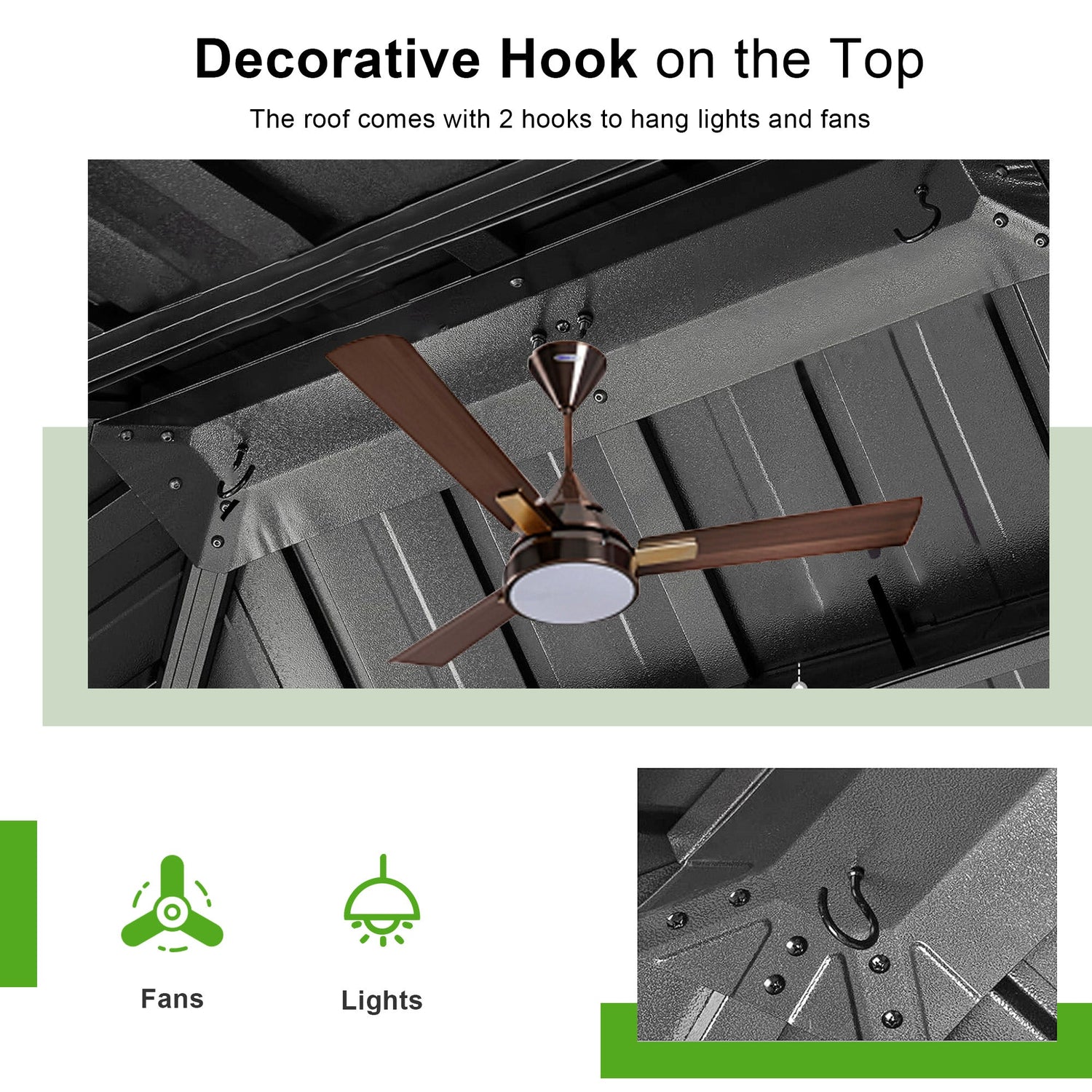 Thoughtful Details – Integrated ceiling hooks allow you to hang chandeliers, string lights, or decorations, easily turning your gazebo into a cosy gathering space for family BBQs, parties, or relaxing evenings.