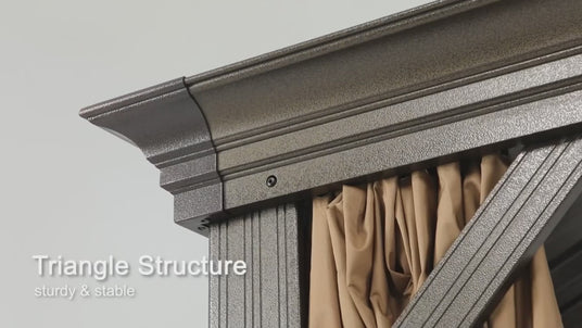 Patioslife Haven | Hardtop Gazebo with Drainage Gutters Aluminum Frame, Double Vented Roof & Curtains, Patio Pergola for Garden or Backyard - Grey / 10' x 10' is backordered and will ship as soon as it is back in stock.