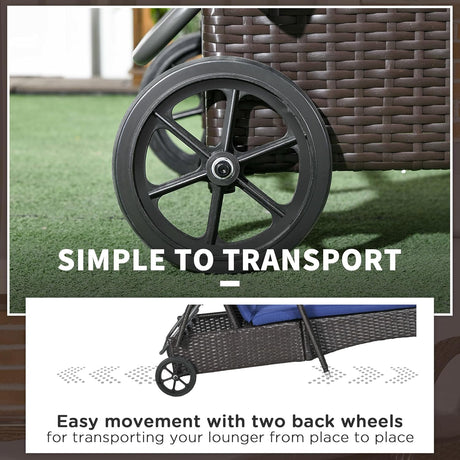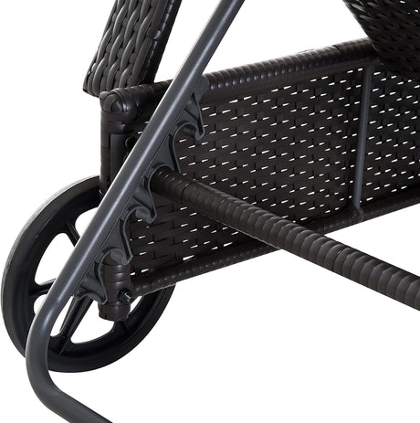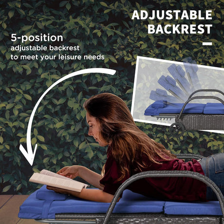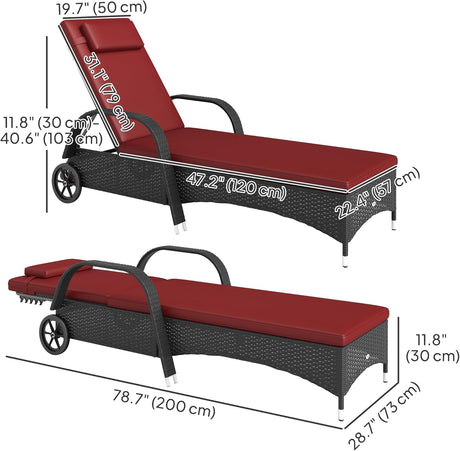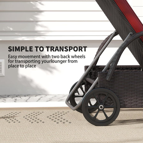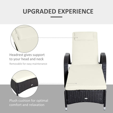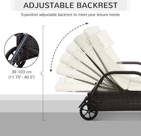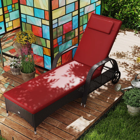 Patioslife Wicker Chaise Lounge Chair – Outdoor PE Rattan Sun Lounger with Cushion, Adjustable 5-Level Backrest, Headrest & Wheels, Deep Coffee & Cream White