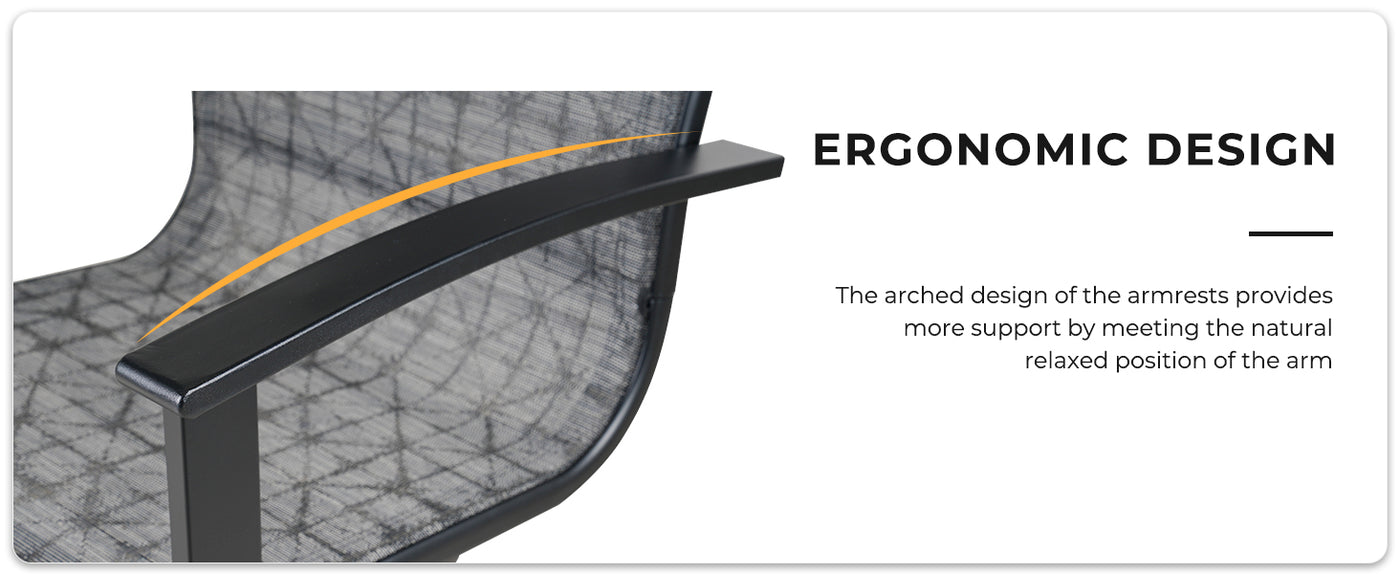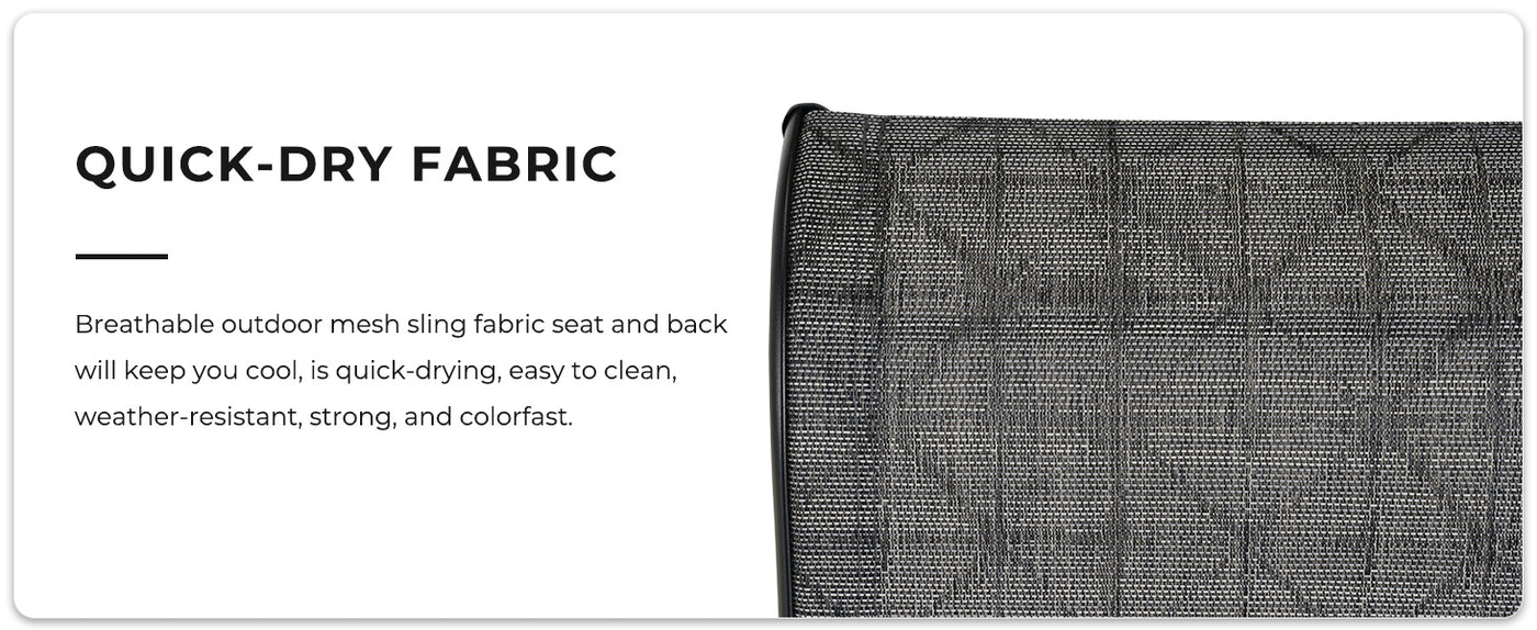 Made with high-quality mesh sling fabric, these chairs are breathable and quick-drying—keeping you cool and comfortable even on warm days. The weather-resistant material is easy to clean and ideal for outdoor use. -