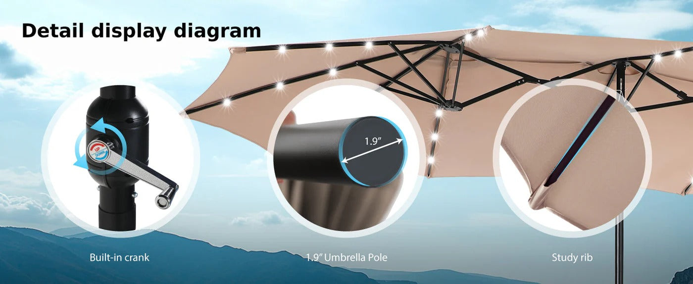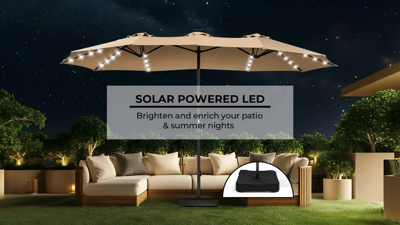 Patioslife Horizon Haven™ 15'x 9' Double-Sided Patio Umbrella with LED Lights