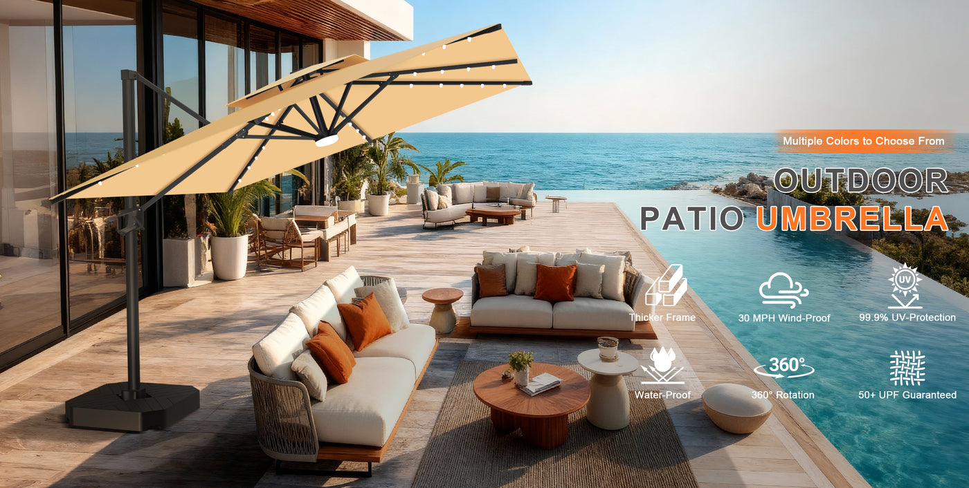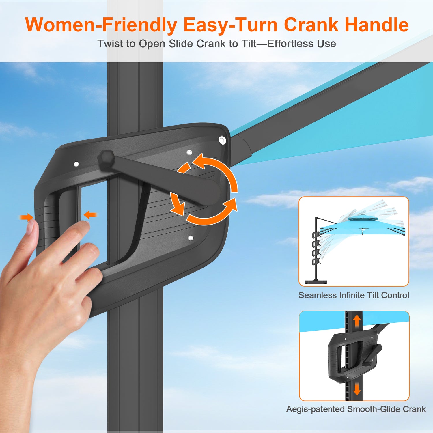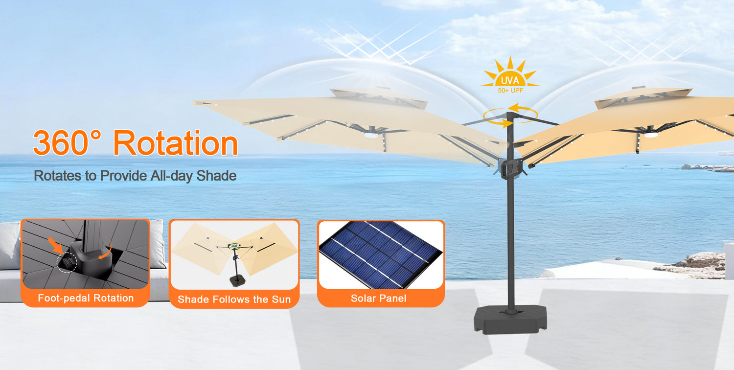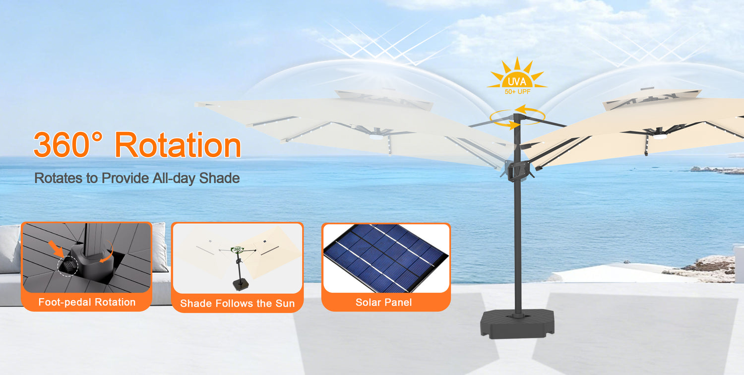 Rotate 360° with a simple foot pedal and fine-tune the tilt for all-day comfort—no sun angle is out of reach. Whether you're poolside, hosting brunch, or unwinding on the patio, enjoy seamless shade exactly where you need it.