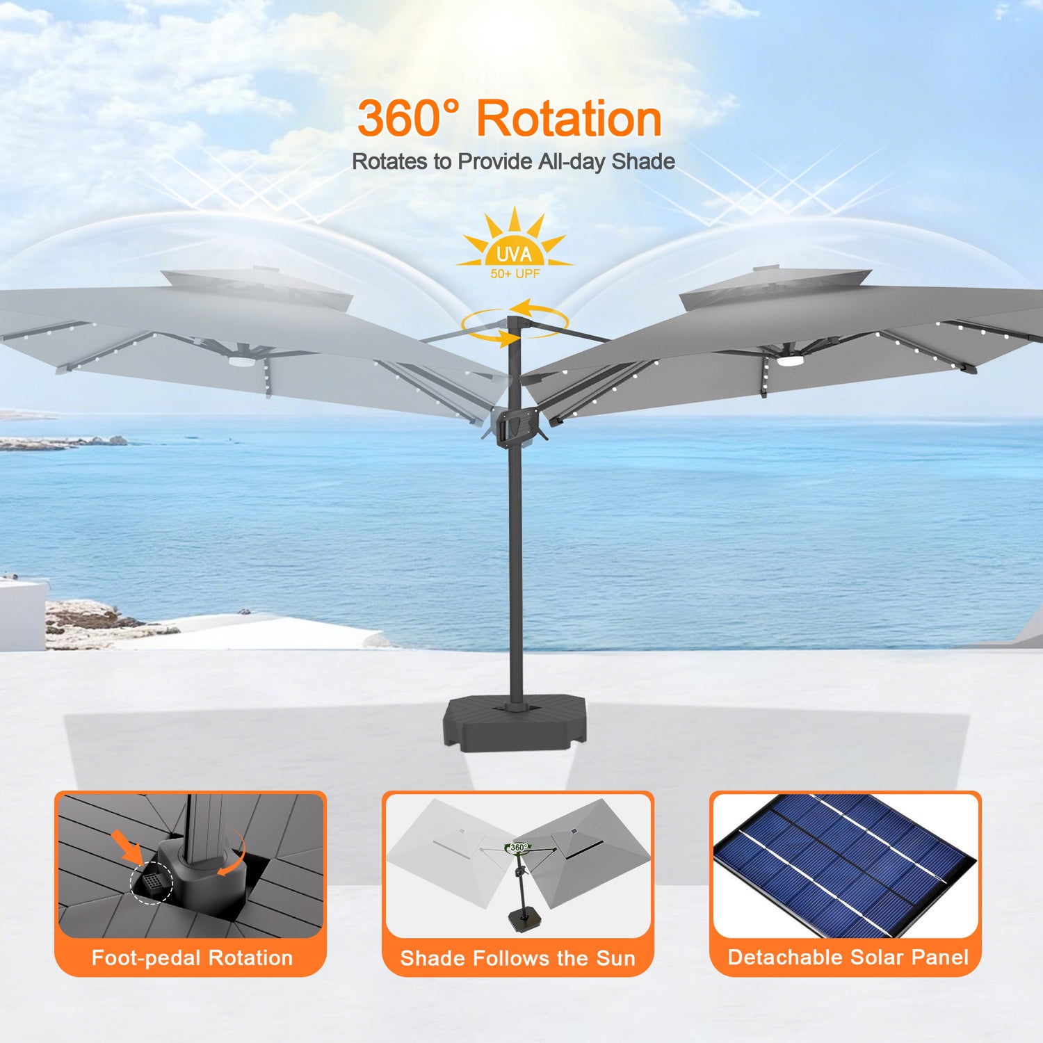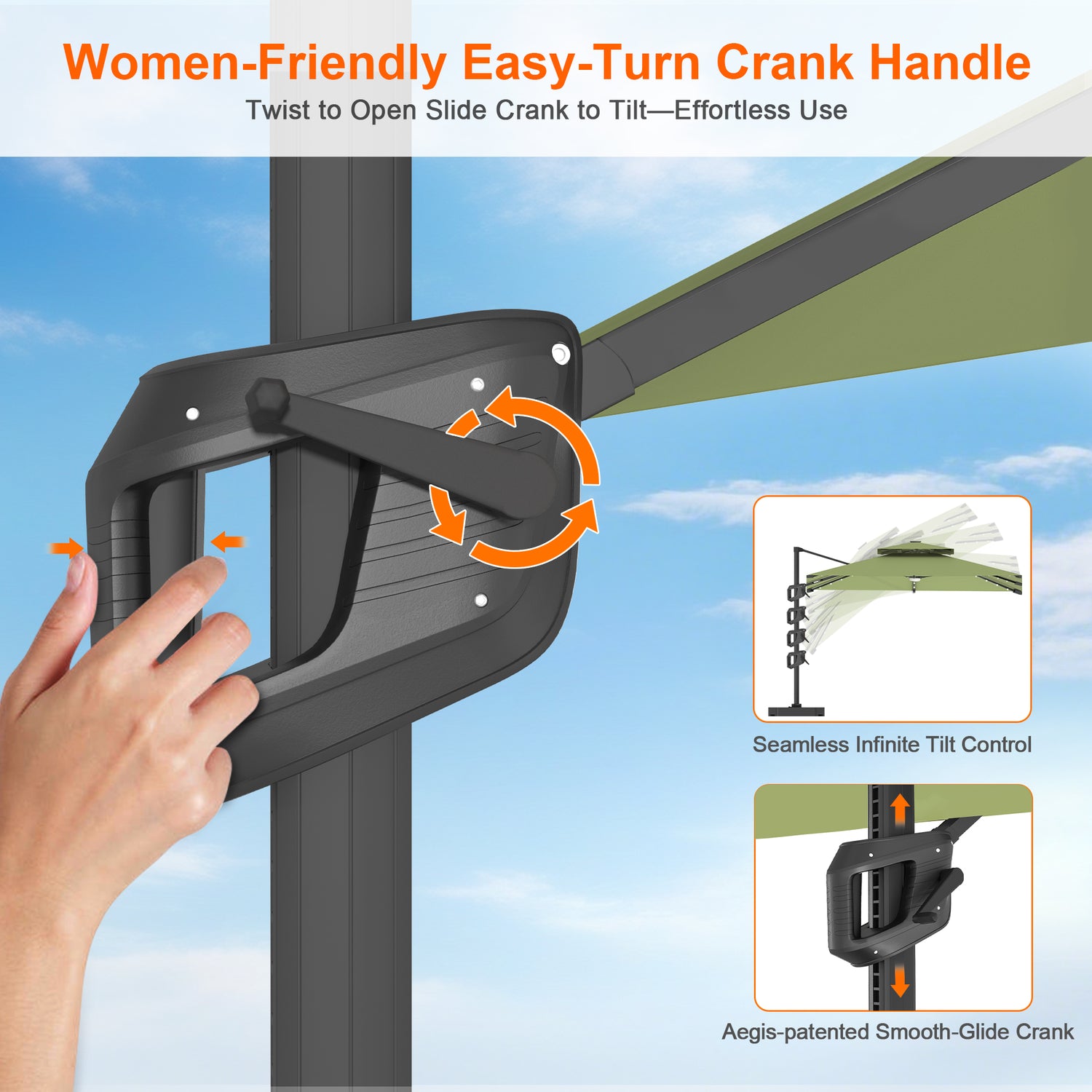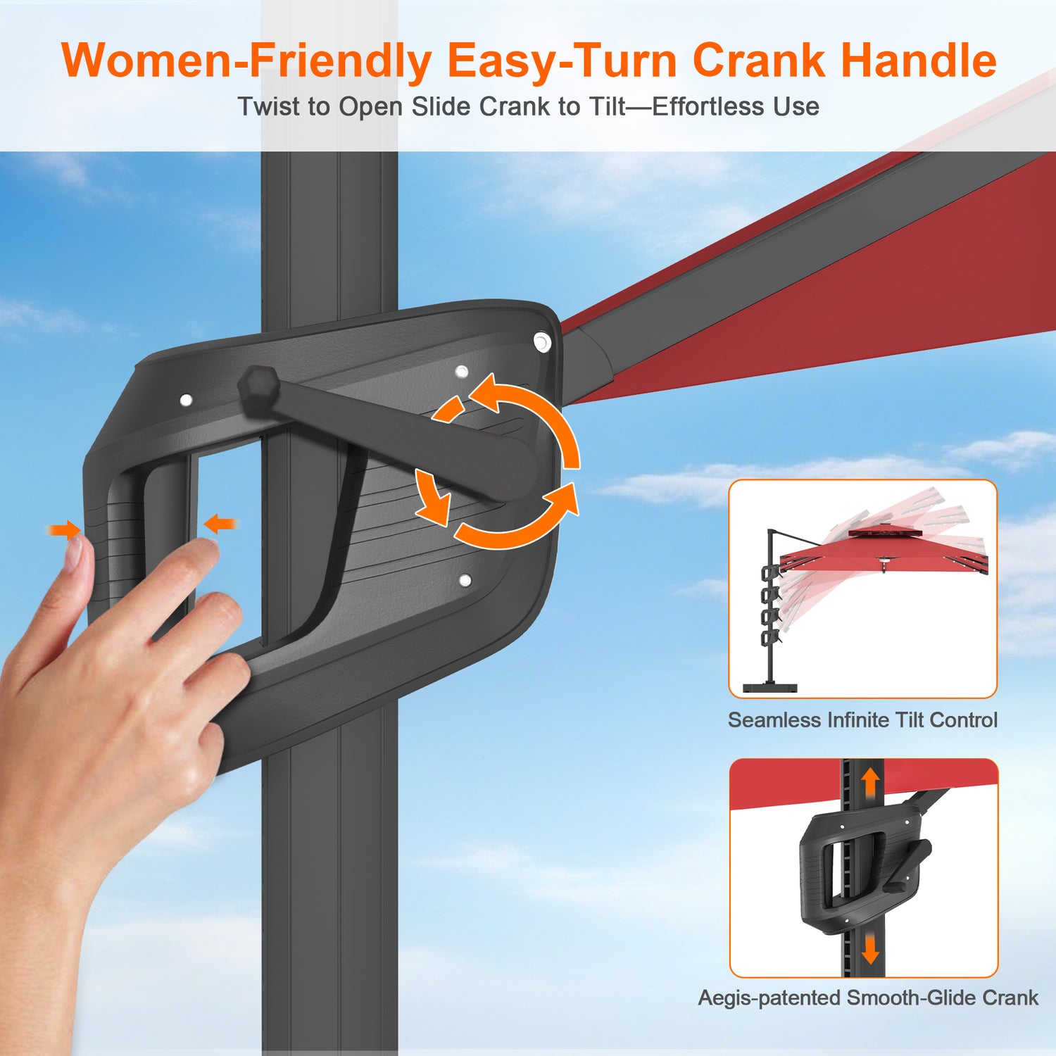 Rotate 360° with a simple foot pedal and fine-tune the tilt for all-day comfort—no sun angle is out of reach. Whether you're poolside, hosting brunch, or unwinding on the patio, enjoy seamless shade exactly where you need it.