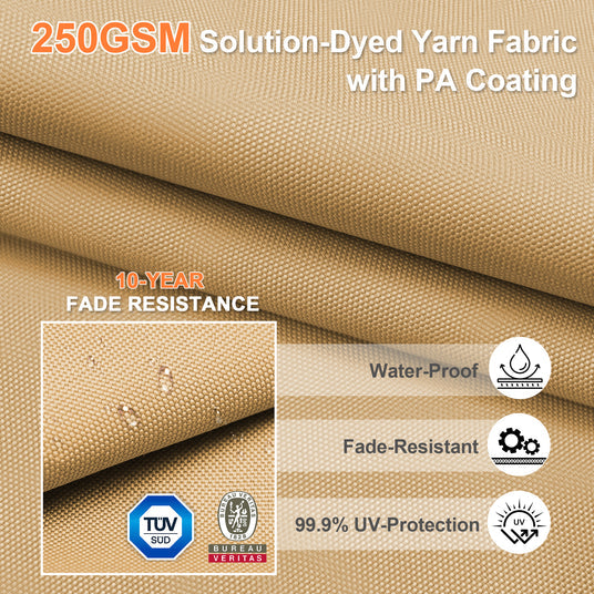 Made from premium 250GSM solution-dyed fabric with a PA coating, this canopy is designed to deliver dependable durability, colour stability, and weather resistance for outdoor use.