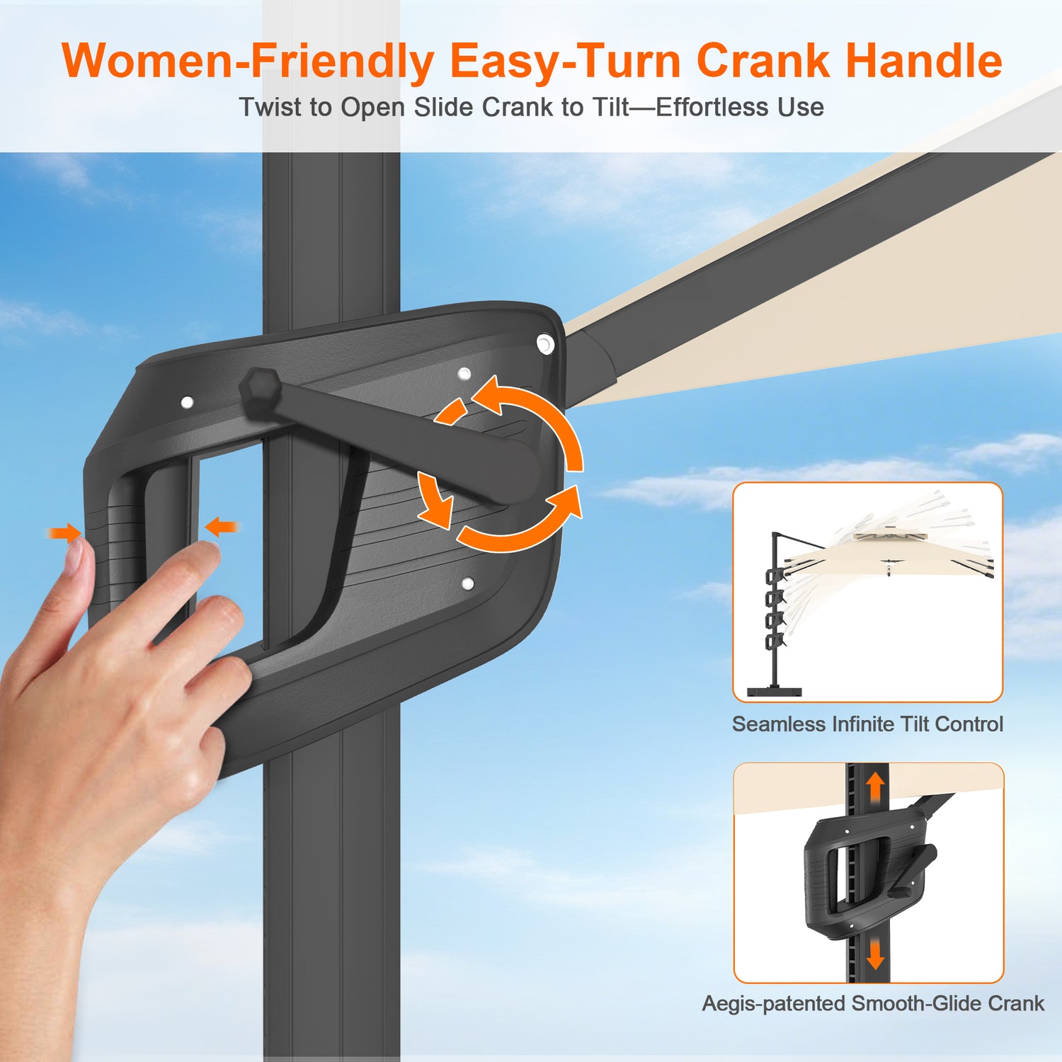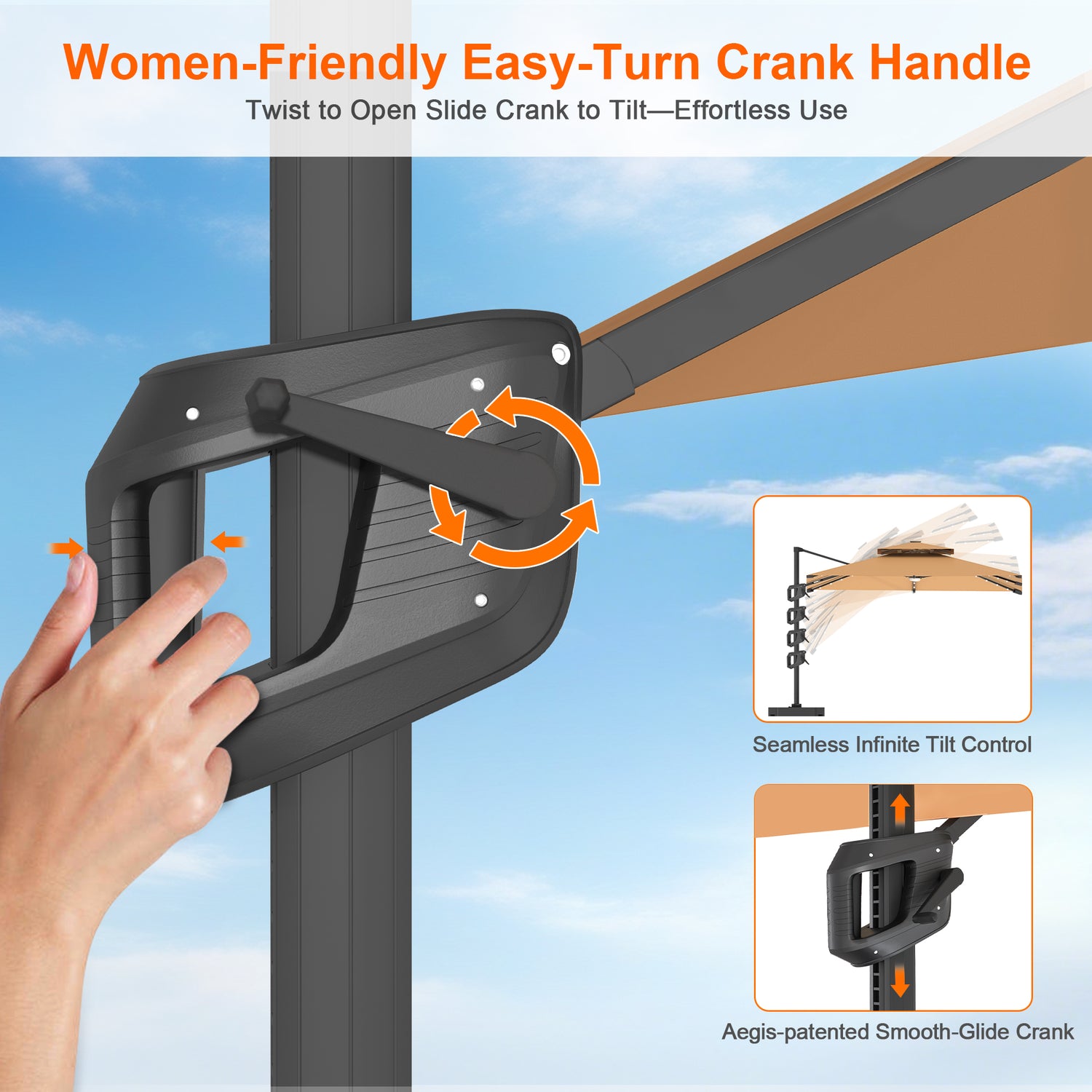 Patioslife Aegis Pro Cantilever Umbrella with LED Lights, Reinforced & Powder-Coated Aluminium Ribs and Pole — Perfect for Garden & Patio - 10x10FT / Beige / Umbrella Only is backordered and will ship as soon as it is back in stock.