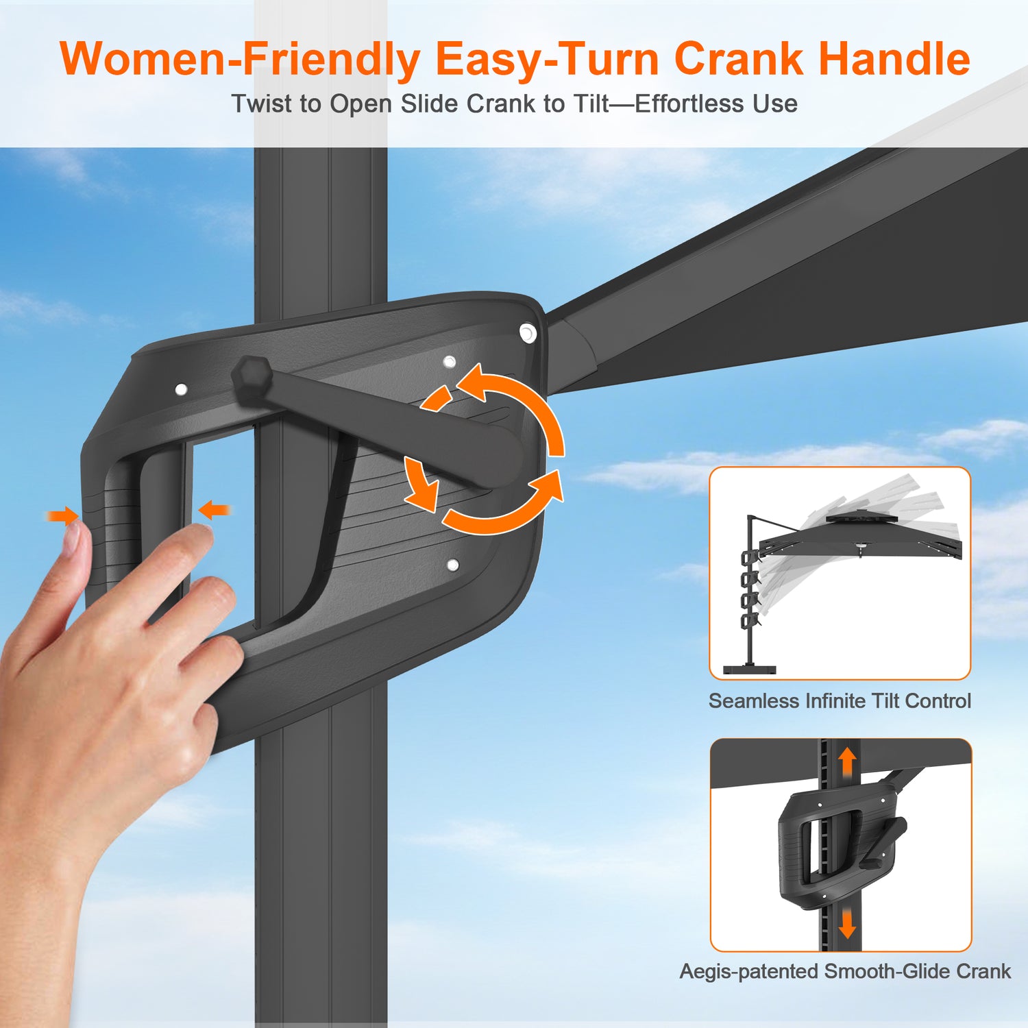 Patioslife Aegis Pro Cantilever Umbrella with LED Lights, Reinforced & Powder-Coated Aluminium Ribs and Pole — Perfect for Garden & Patio