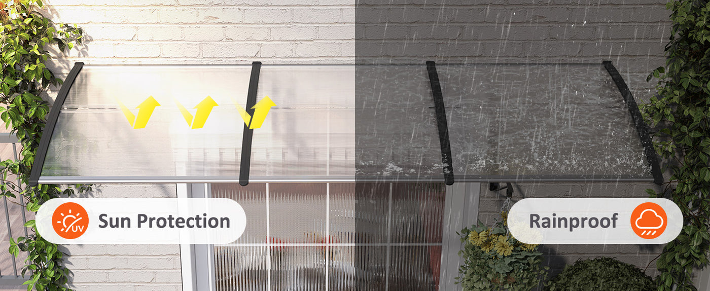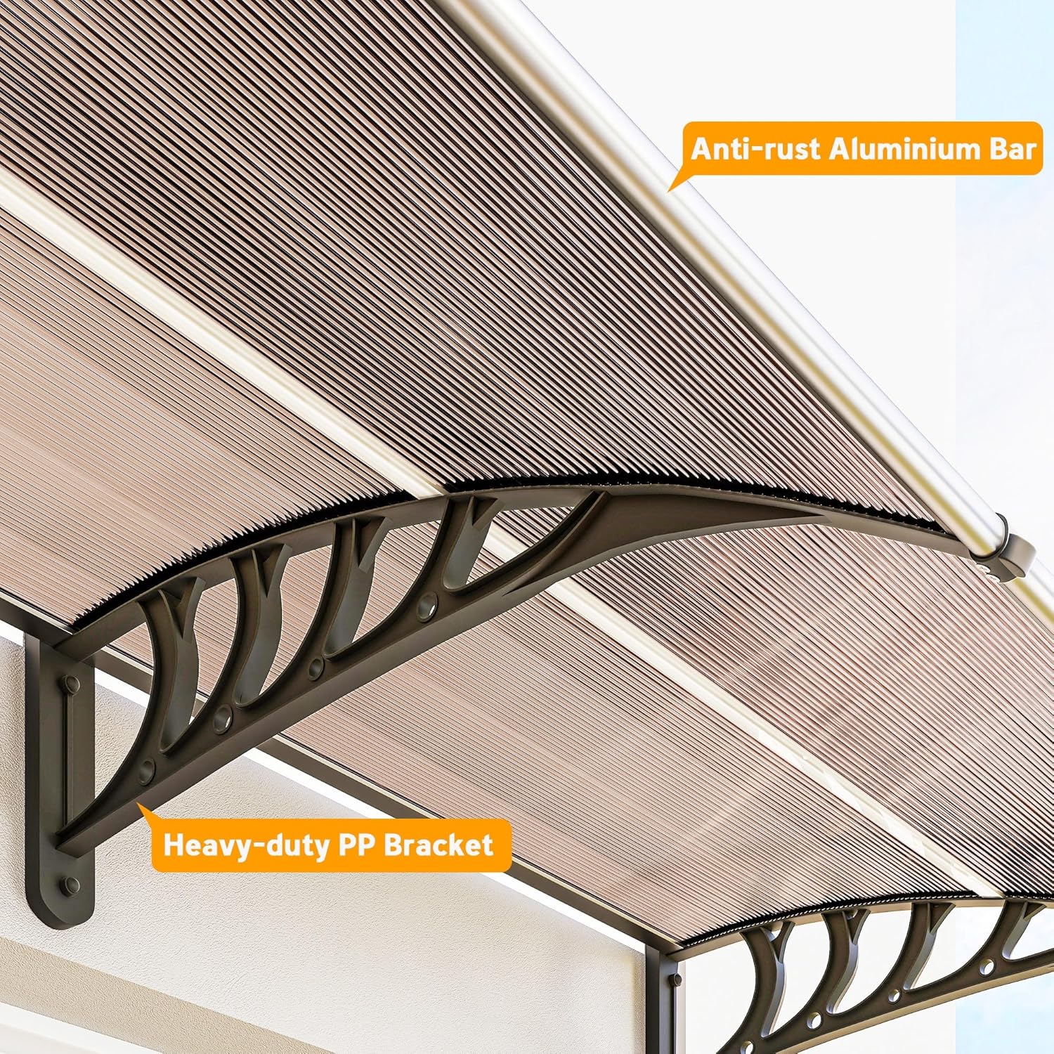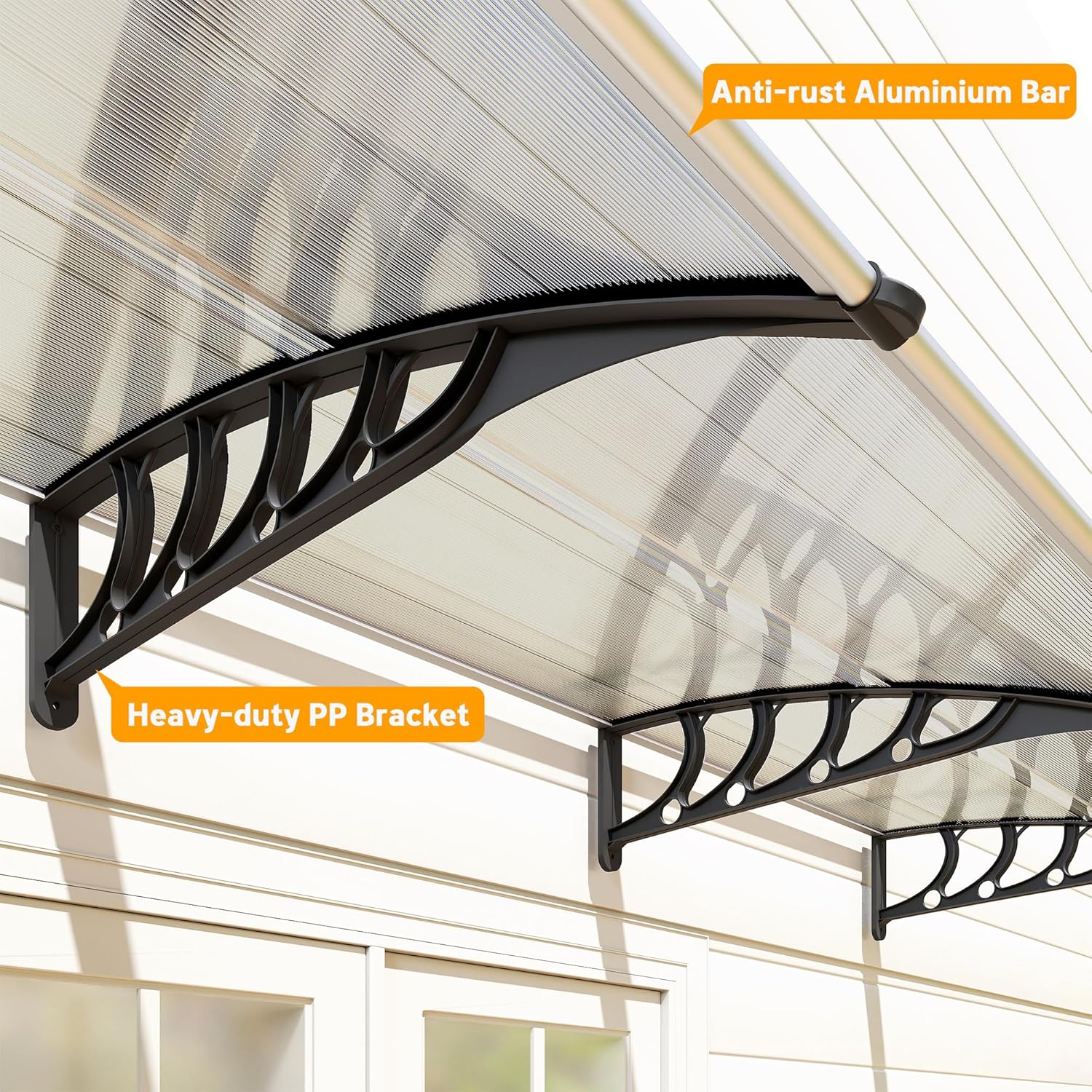 - Built with high-quality polycarbonate panels, sturdy brackets, and rust-resistant metal supports, this awning is made to last. It stands strong against everyday weather conditions, maintaining both performance and appearance for years to come.