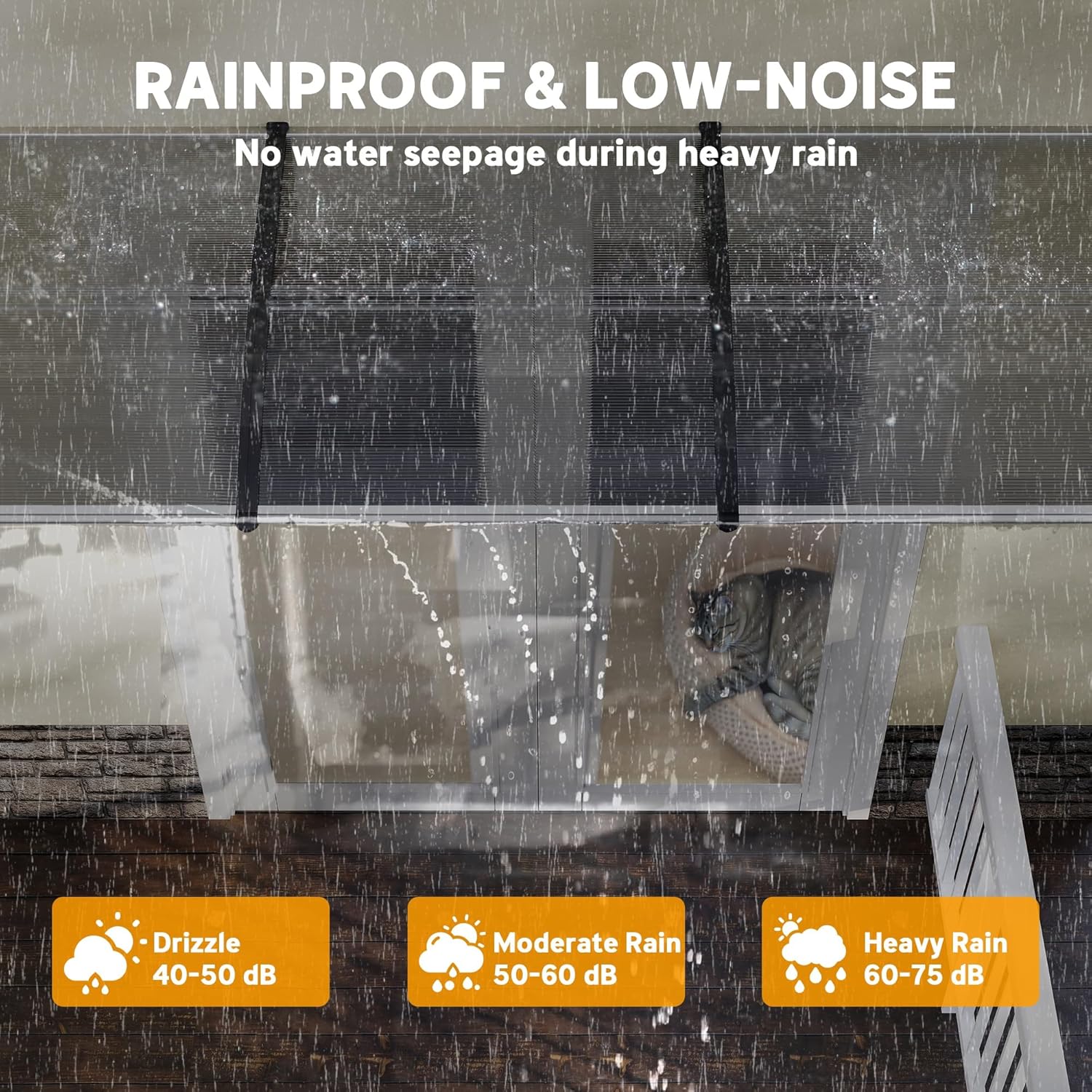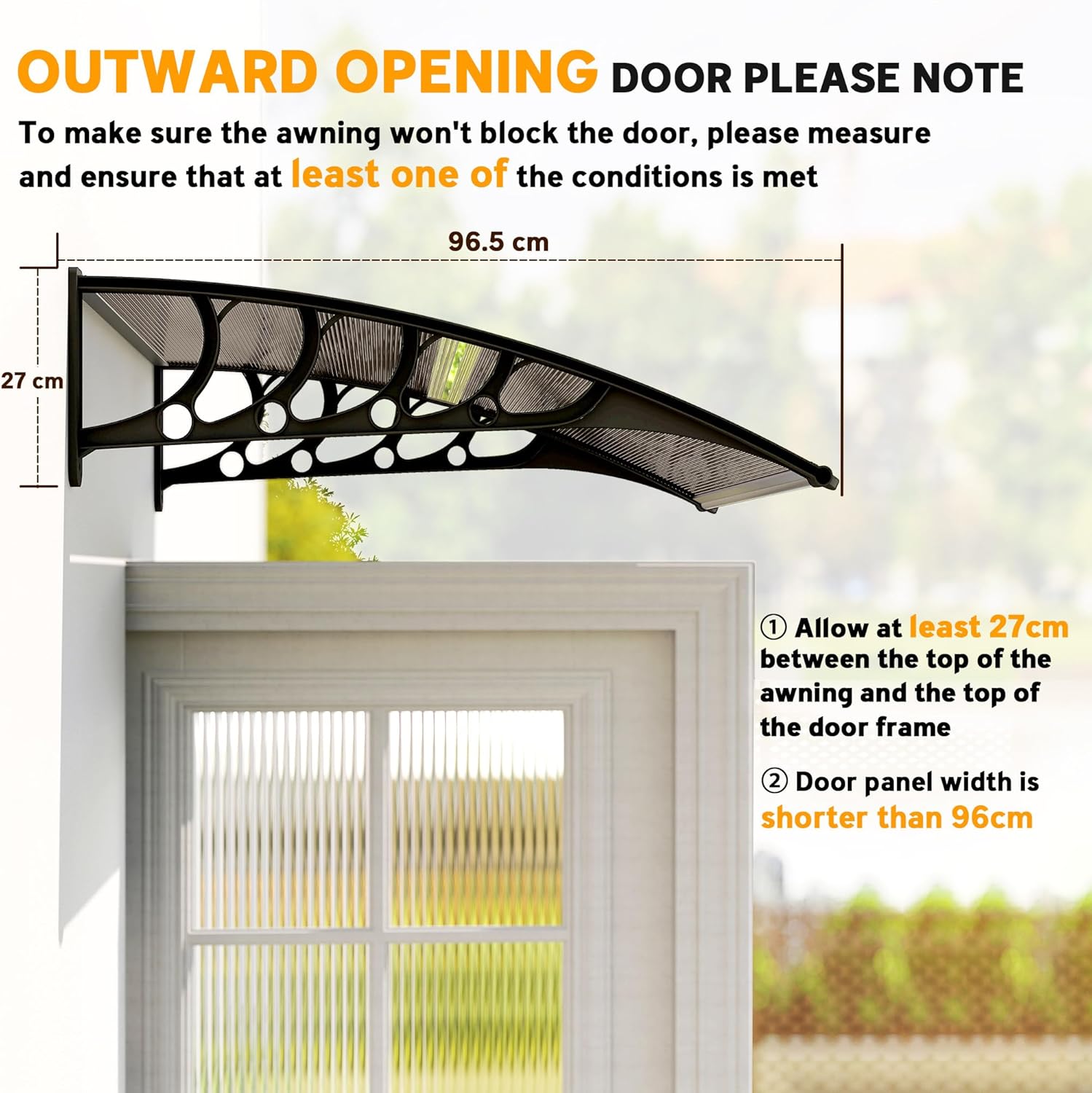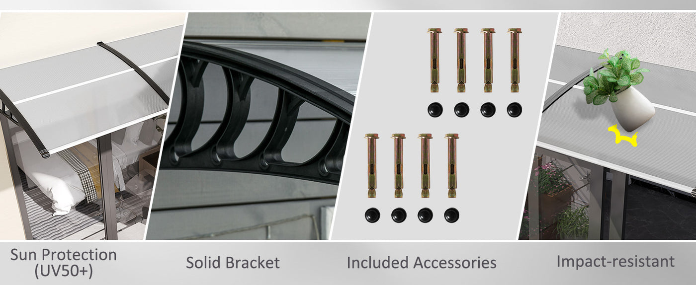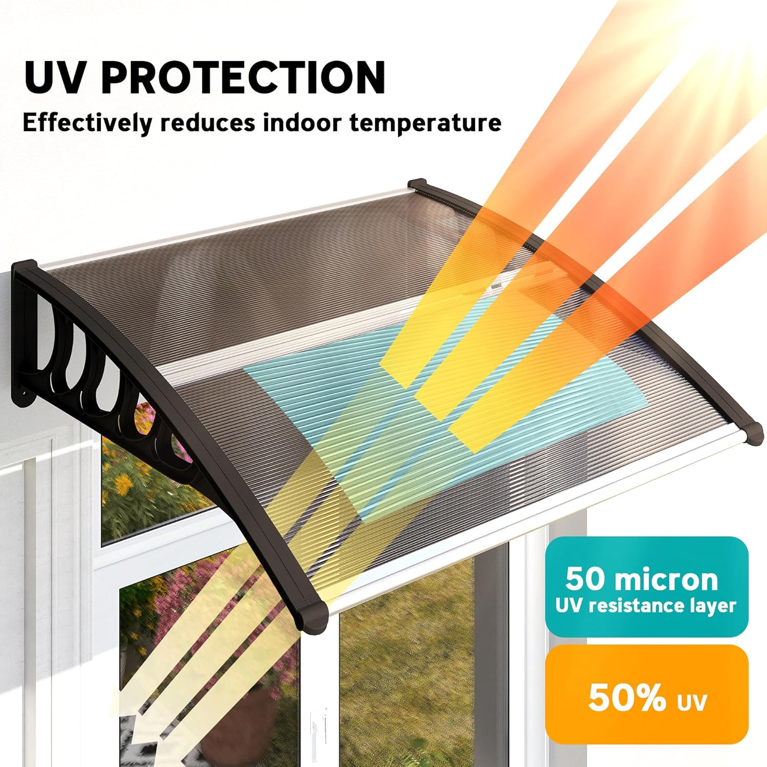 - Built with high-quality polycarbonate panels, sturdy brackets, and rust-resistant metal supports, this awning is made to last. It stands strong against everyday weather conditions, maintaining both performance and appearance for years to come.